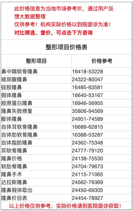 二、萍鄉(xiāng)市第二人民醫(yī)院整形科隆鼻價目表