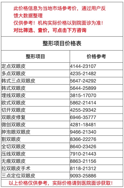 二、商丘市中心醫(yī)院整形科做雙眼皮價(jià)目表