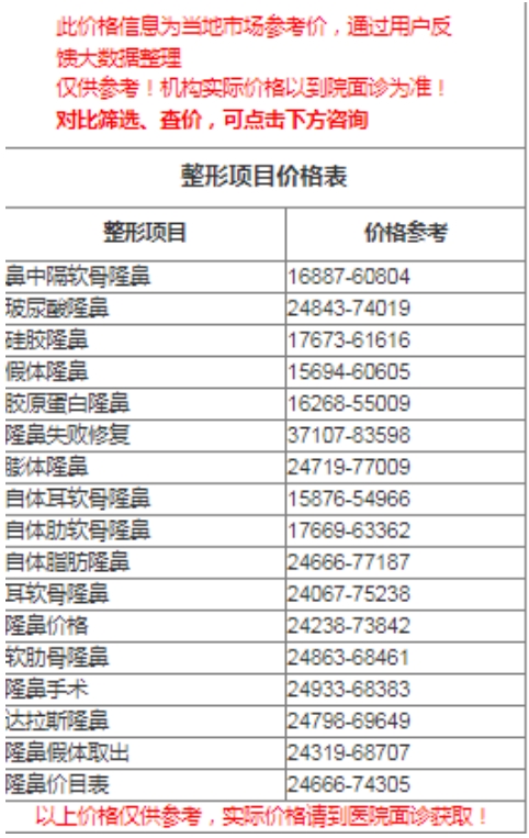 二、石家莊常春藤醫(yī)美價格表