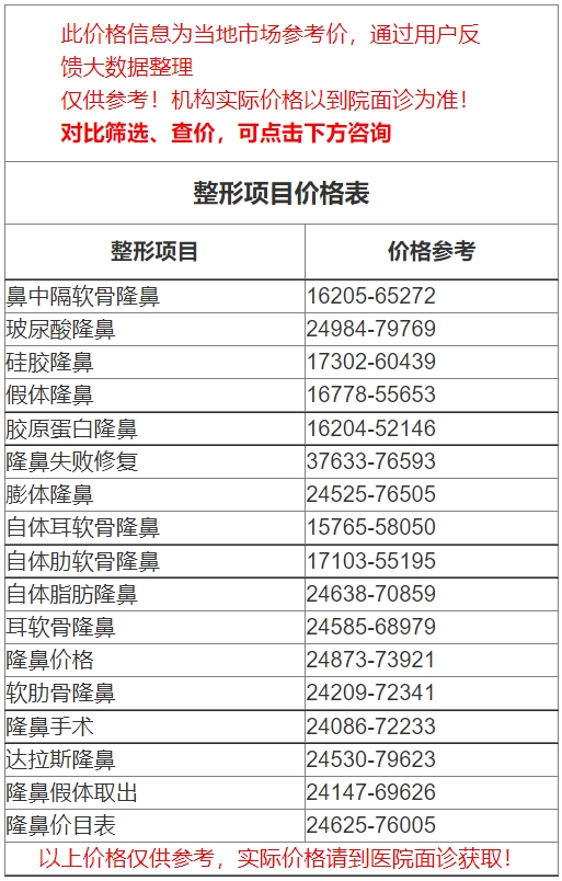 二、許昌市人民醫(yī)院整形科隆鼻價格