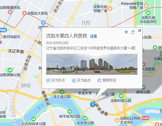 醫(yī)院地址:遼寧省沈陽市和平區(qū)三好街136號新世界豐盛商務(wù)大廈1-4層