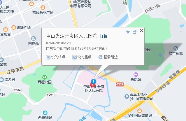 醫(yī)院地址:廣東省中山市逸仙路123號(hào)(大環(huán)村對(duì)面)