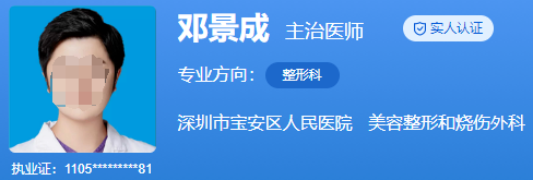 醫(yī)生介紹:鄧景成,畢業(yè)于上海交通大學,獲得醫(yī)學碩士學位。自畢業(yè)以來從事整形科已有多年時間,有許多成功的手術(shù)案例。他擅長各種眼鼻整形手術(shù)和下領(lǐng)角整形手術(shù),尤其是在眼部、鼻部美容整形方面有獨到的設(shè)計經(jīng)驗和效果。此外,他還在整形科領(lǐng)域發(fā)表多篇學術(shù)論文,獲得業(yè)界的廣泛認可。