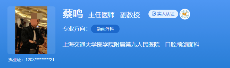 醫(yī)生介紹:蔡鳴醫(yī)生畢業(yè)于上海交大口腔醫(yī)學(xué)院,獲口腔頜面外科碩士學(xué)位。他擅長(zhǎng)正頜外科、數(shù)字化外科、牽引成骨術(shù)等治療,在唇腭裂畸形、牙頜面畸形、顱面輪廓畸形的診治方面有著豐富的經(jīng)驗(yàn)。蔡醫(yī)生發(fā)表了多篇學(xué)術(shù)論文,獲得了四十多項(xiàng)專利授權(quán),榮獲眾多獎(jiǎng)項(xiàng),贏得了愛美人士的廣泛贊譽(yù)。