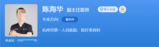 醫(yī)生介紹:陳海華醫(yī)生擁有南京醫(yī)科大學(xué)整形外科博士學(xué)位、中國醫(yī)科大學(xué)整形外科碩士學(xué)位,曾在英國倫敦、美國和韓國等國家進(jìn)修學(xué)習(xí),積累了豐富的國際醫(yī)療經(jīng)驗。他擅長內(nèi)眼角過大修復(fù)、重瞼、雙眼皮修復(fù)等,在手術(shù)中注重解剖層次的準(zhǔn)確把握和操作精細(xì),這在一定程度上規(guī)避了手術(shù)風(fēng)險,保證了手術(shù)效果。他善于根據(jù)愛美人士的面部特征和氣質(zhì)進(jìn)行個性化設(shè)計,使術(shù)后效果更加自然、和諧。